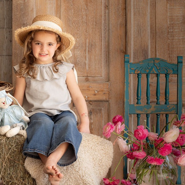 Preciosa blusa de lino algodón estilo romántica. Suave y cómoda para nuestras niñas. Son modelos únicos diseñados y confeccionados en Chile.