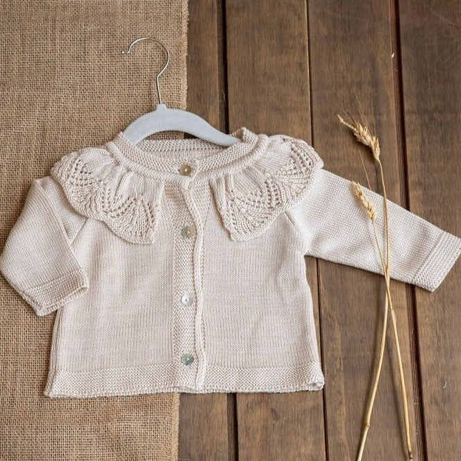 Chaleco tejido de hilo algodón hipoalergénico con detalle cuello a crochet. Perfecto para todas las temporadas, modelo abierto con botones de madera. Diseño y confección nacional. Se puede lavar en la lavadora con función delicado o a mano.
