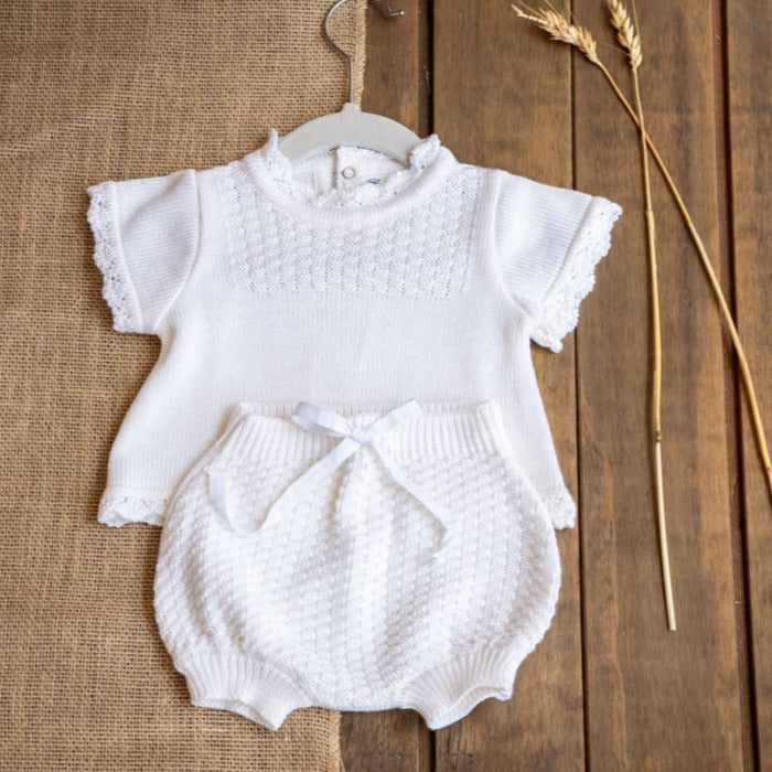 Conjunto guinda blanco tejido en hilo algodón hipoalergénico manga corta. Perfecto para todas las temporadas. Se puede usar en invierno con panties debajo y en verano sin nada. Diseño y confección nacional. Se puede lavar en la lavadora con función delicado o a mano.
