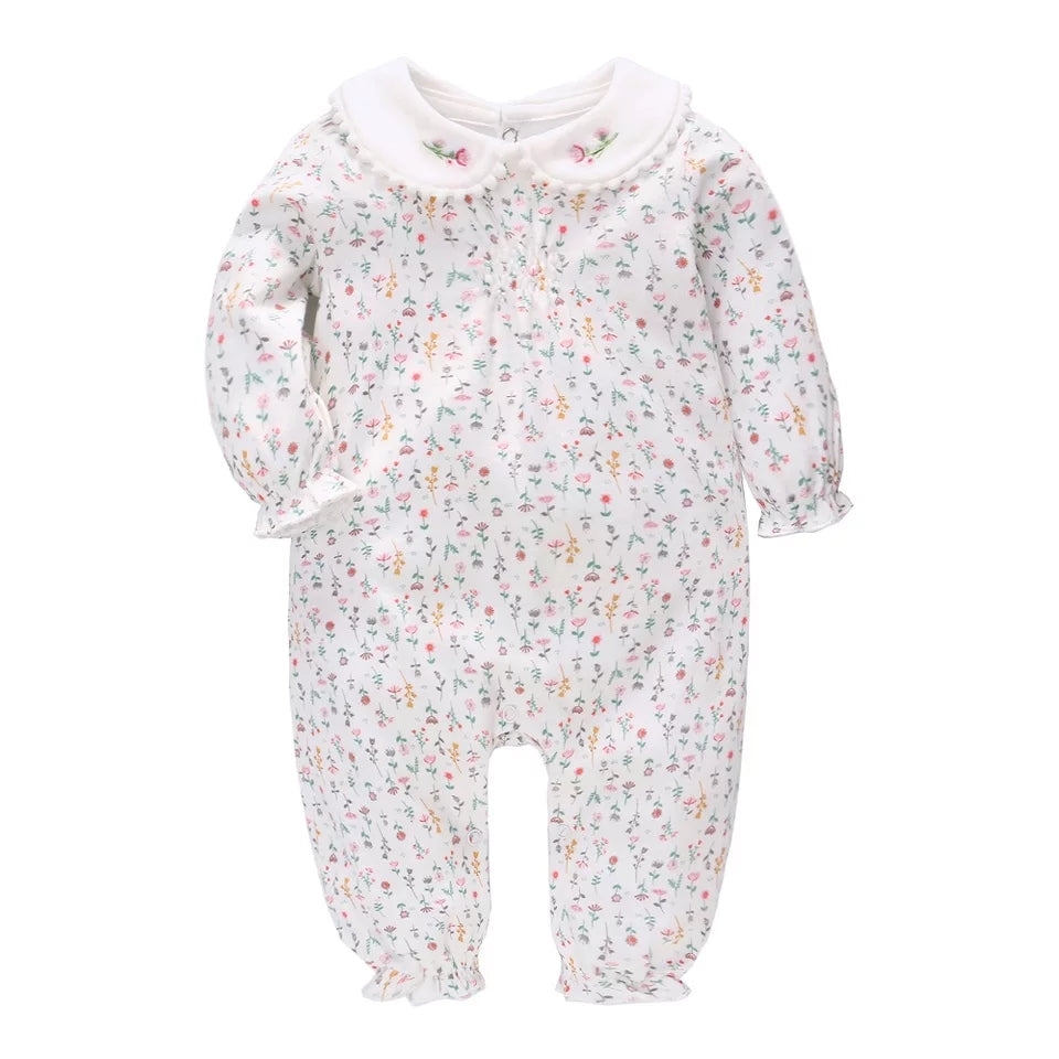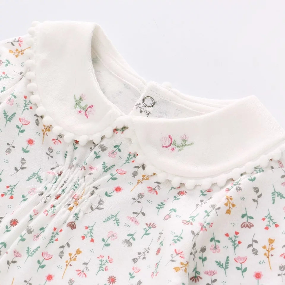 Enterito floreado 100% algodón, con cuello bordado. Muy suave y cómodo.